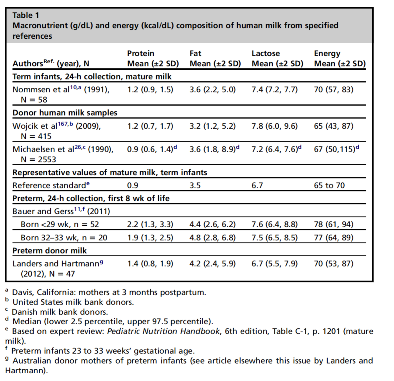 [6] Bauer J, Gerss J. Longitudinal analysis of macronutrients and minerals in human milk produced by mothers of preterm infants. Clin Nutr 2011;30(2):215–20.
