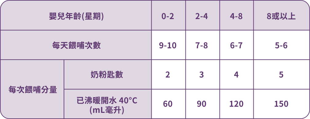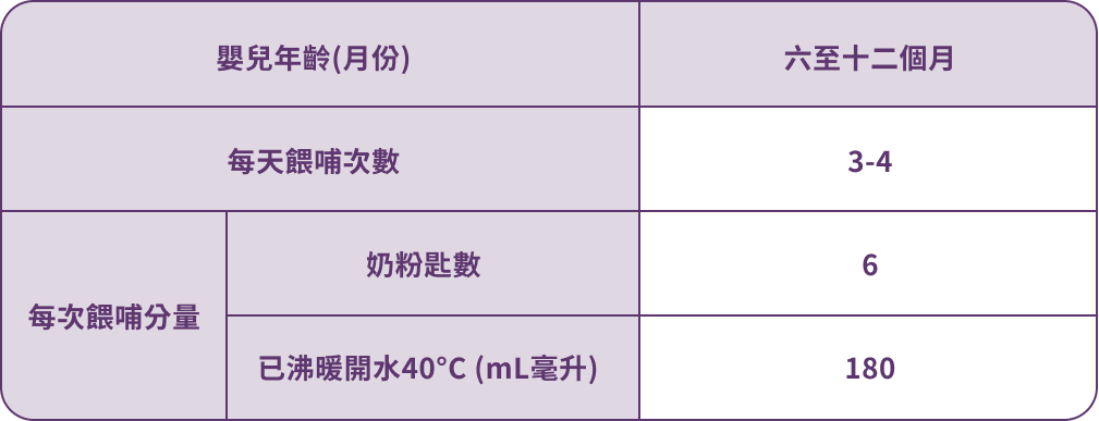年齡未滿6個月的嬰兒飲用的配方奶時,每次只應沖調一餐的分量,並以冷卻至不低於